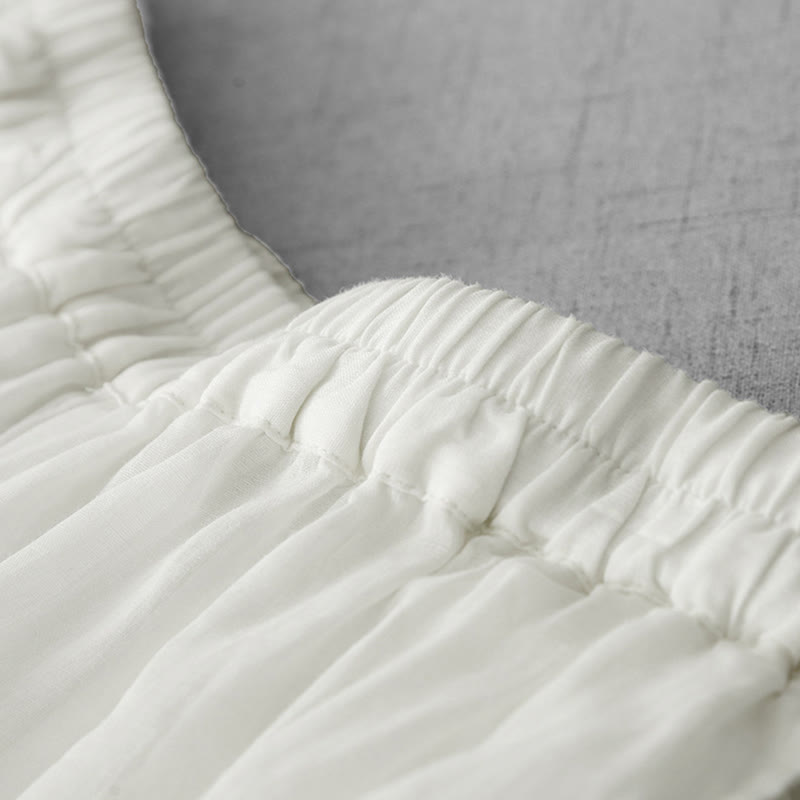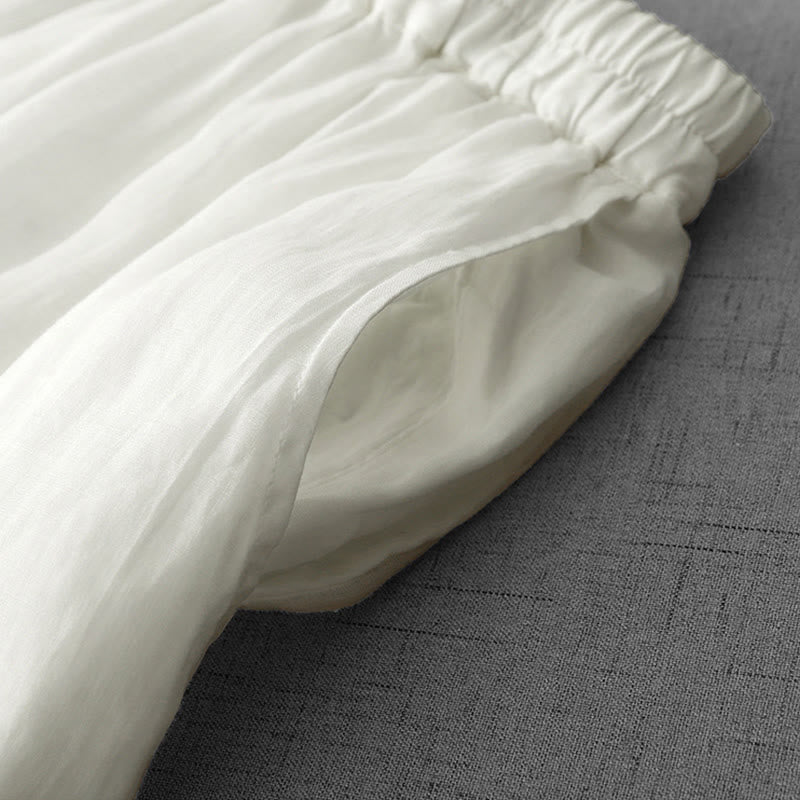 Buddha Stones Commute Solid Color Lace Embroidery Design Cotton Women's Wide Leg Cropped Pants With Pockets - White - US8-10,UK/AU12-14,EU40-42 (2XL) - image 0