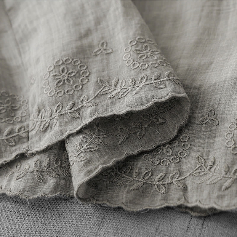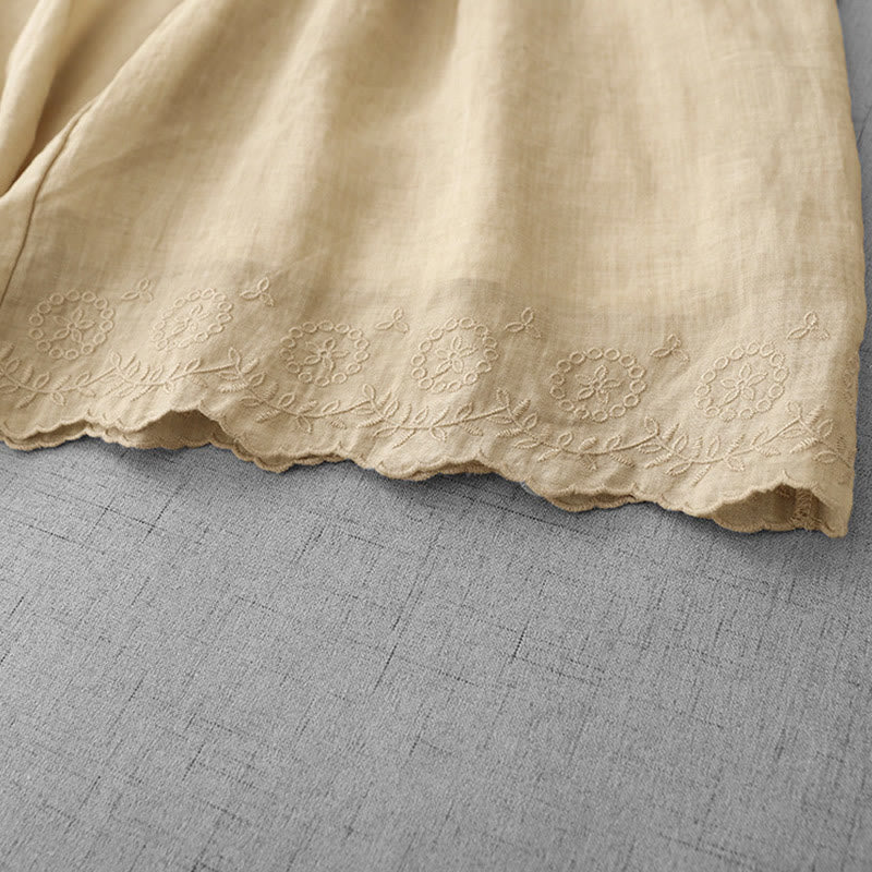 Buddha Stones Commute Solid Color Lace Embroidery Design Cotton Women's Wide Leg Cropped Pants With Pockets