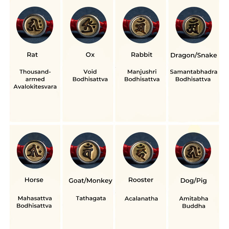 Buddha Stones Handmade 925 Sterling Silver Chinese Zodiac Natal Buddha Protection Colorful Rope Bracelet