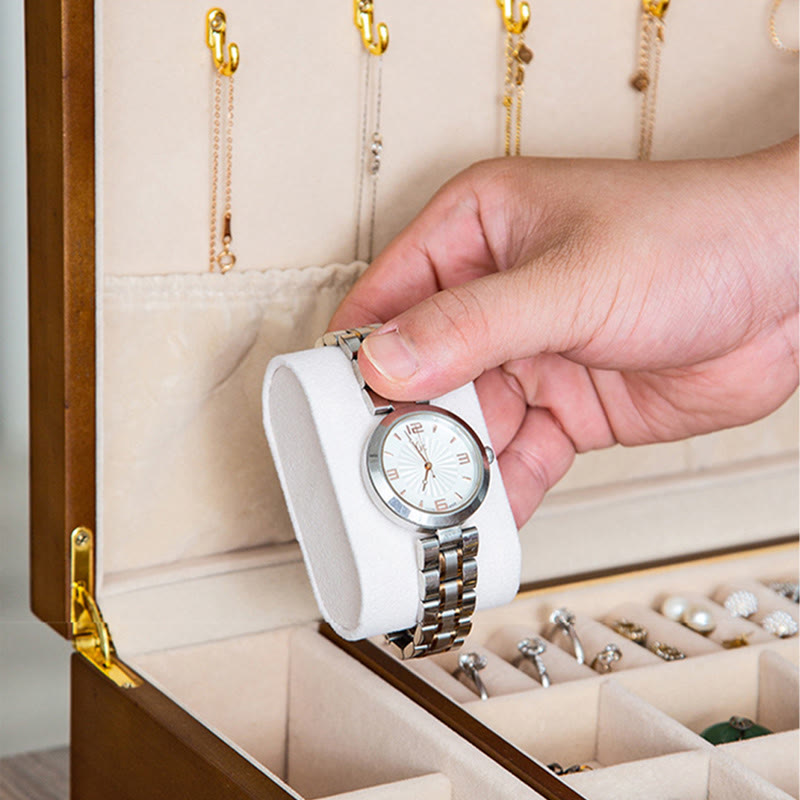 Secure and organize your cherished items in our Buddha Stones Two-Layer Wooden Jewelry Box, perfect for various jewelry and an ideal, meaningful gift.